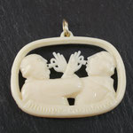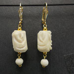Ohrringe Elfenbein, aufwendig geschnitztes Dekor.